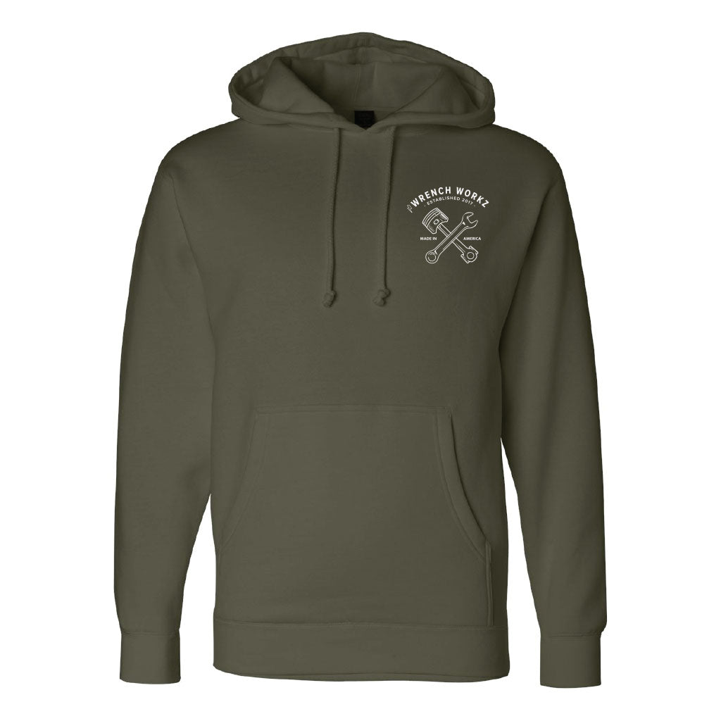 WrenchWorkz Piston Logo on front and Block Logo on back